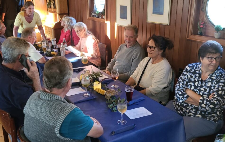 Am Samstag 25.10.2025 veranstaltete der Mittelsteg einen gemütlichen Hock mit Zwiebelkuchen, Quiche Lorraine und Gemüsequiche, an dem 50-60 Personen teilgenommen haben. Ein besonderes Highlight war der Citre-Cocktailstand. Wie die Bilder zeigen war dies eine sehr gelungene Veranstaltung, die bis nach Mitternacht mit Freude genossen wurde.